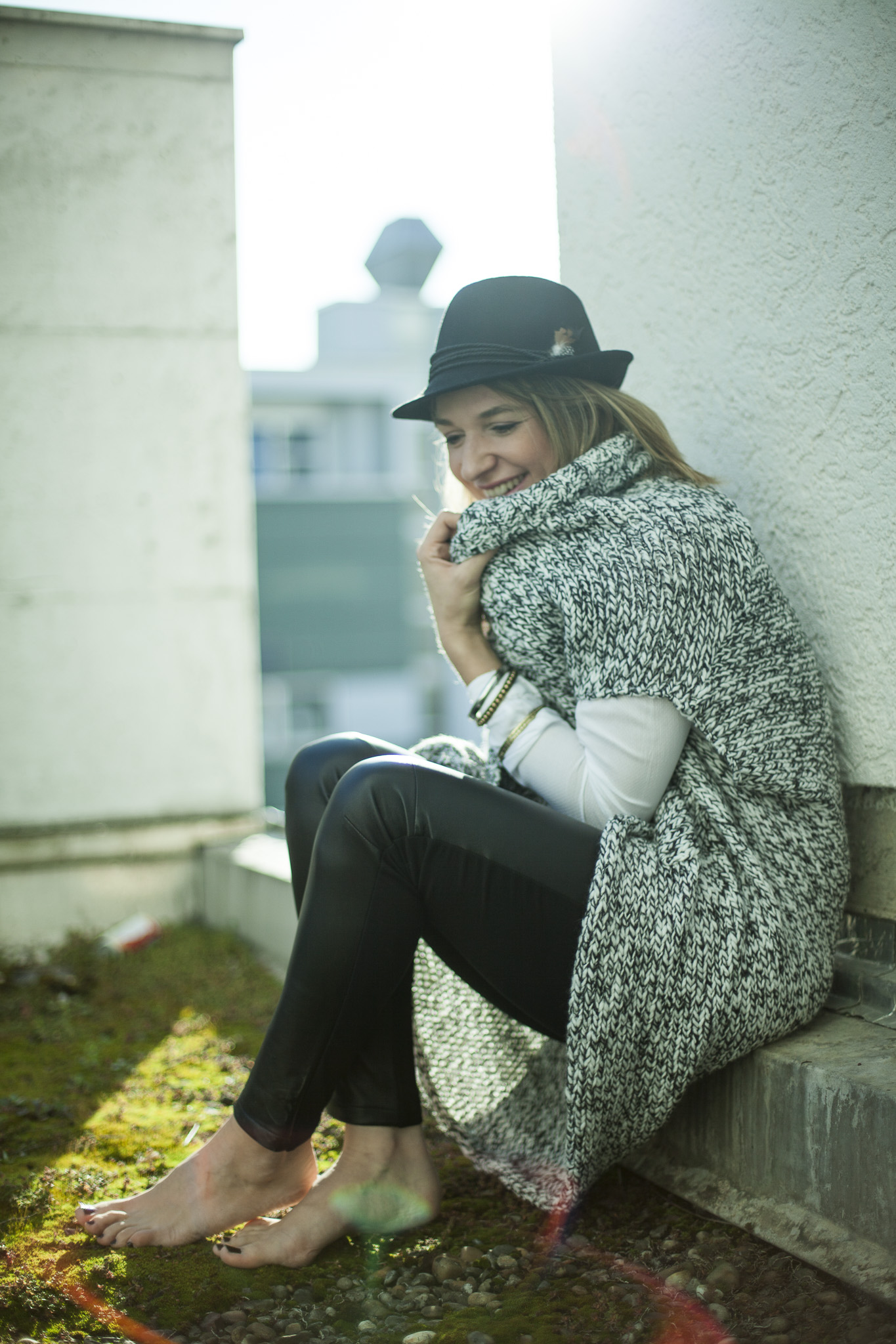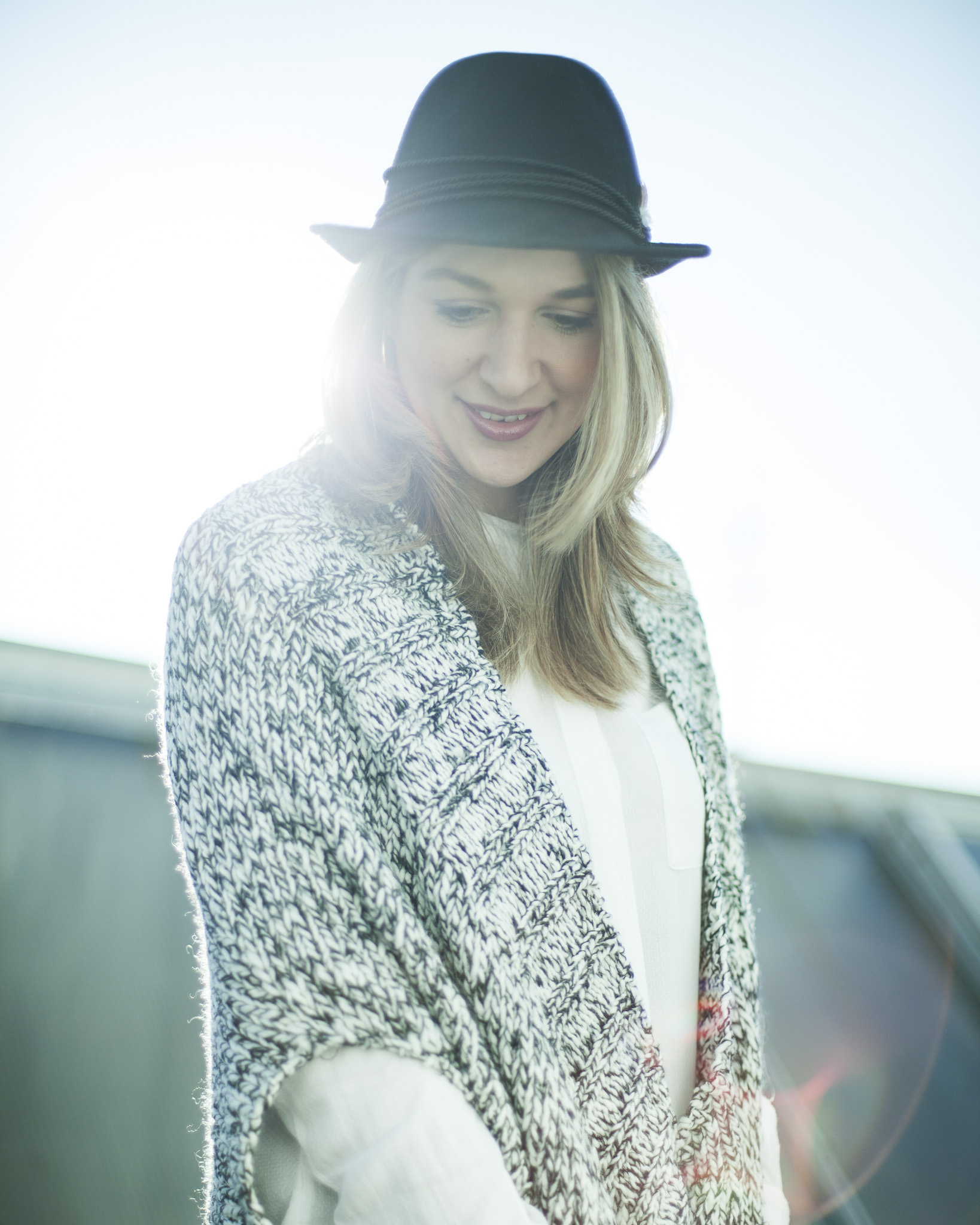 Dieses Mal kein Business-outfit-of-the-week… Ich habe frei, einfach nur so! Wenn man Kinder hat und arbeitet kommt man ja quasi zu gar nichts. Ich frage mich ja wie andere das machen. Bei mir jedenfalls bleibt jede Menge liegen. Also endlich mal Zeit für Erledigungen und für mich selbst und endlich mal Zeit, das anzuziehen, was Spaß macht, ohne sich an Büro-Regeln halten zu müssen! Und in einem Post gleich 3 Winter-must-haves verpackt: Eine kuschelige Oversize-Grobstrick-Jacke, dazu eine Materialmix-Hose, vorne Leder, hinten Stretch und last but not least: Ein Hut!